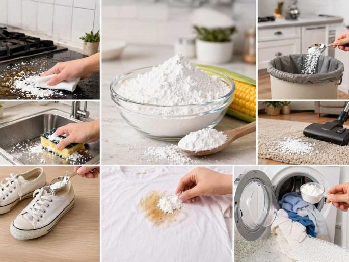 आपल्या किचनमध्ये अशा बऱ्याच वस्तू असतात ज्यांचा वापर फक्त चव वाढवण्यासाठीच नाही तर इतर घरगुती कामांसाठीही केला जातो (Cornstarch Benefits). काही पदार्थांचा वापर करून तुम्ही दुर्गंध दूर करू शकता तसंच स्वच्छताही करू शकता. त्यापैकीच एक म्हणजे कॉर्नस्टार्च. कॉर्नस्टार्चचा वापर करून तुम्ही किचनचा चिकटपणा काढून टाकू शकता. तसंच घरातील इतर कामंही सोपी होतील. (How Cornstarch Helps Remove Grease Dirt And Odor from Your Home And Clothes)