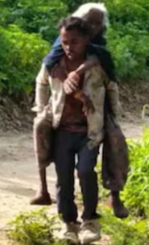 ७० वर्षांच्या आजारी आजीला पाठीवरुन घेऊन जाणारा नातू सोशल मीडियावर बनला हिरो