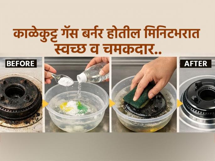 स्वयंपाकघरात रोज वापरल्या जाणाऱ्या गॅस बर्नरवर तेलाचे डाग, अन्नपदार्थ आणि धुरामुळे काळी काजळी जमा होते. त्यामुळे बर्नर केवळ दिसायला खराब वाटत नाही तर गॅसचा फ्लोही नीट राहत नाही. महागडी केमिकल क्लिनर वापरण्यापेक्षा घरात सहज उपलब्ध असलेल्या वस्तूंनी गॅस बर्नर स्वच्छ (remove black stains from gas burner) करता येतो. योग्य पद्धतीने आणि नियमितपणे स्वच्छता केल्यास काळेकुट्ट गॅस बर्नर पुन्हा नव्यासारखा चमकू शकतो. तासंतास घासूनही गॅस बर्नर नव्यासारखे स्वच्छ होत नाहीत...मग काळजी करू नका! काही असे सोपे आणि 'मॅजिकल' घरगुती उपाय आहेत, ज्याच्या मदतीने तुमचे काळेकुट्ट बर्नर अगदी नवीन विकत (clean gas burner naturally) आणल्यासारखे चमकू लागतील, तेही जास्त मेहनत न घेता... यासाठी नेमकं काय करायचं ते पाहूयात...