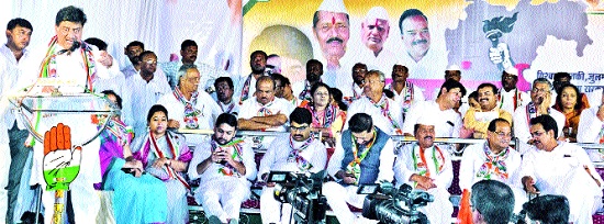 जत तालुका काँग्रेसचे नेते विक्रम सावंत म्हणाले की, तालुक्यातील पाण्याचा प्रश्न आजवर निकालात निघाला नाही. त्याला सर्वस्वी आमदार विलासराव जगताप कारणीभूत आहेत. तालुक्यातील बावीस गावांतील नागरिकांनी टँकरद्वारे पिण्यासाठी पाणी मिळावे, अशी मागणी करूनही त्यांना अद्याप टँकर मिळालेला नाही.यावेळी आमदार बसवराज पाटील, आमदार मोहनराव कदम, आमदार शरद रणपिसे, माजी आमदार उमाजी सनमडीकर, नगराध्यक्षा शुभांगी बन्नेनवार, शैलजा पाटील, विशाल पाटील, पी. एम. पाटील, बाबासाहेब कोडग, दिग्विजय चव्हाण, अभिजित चव्हाण, आप्पासाहेब मासाळ, आकाराम मासाळ, चारुताई टोकस, संतोष पाटील, पृथ्वीराज पाटील, रामगोंडा संत्ती, महादेव पाटील, नाथा पाटील, काका शिंदे, रवींद्र सावंत, इकबाल गवंडी, महादेव कोळी, साहीबू कोळी, ईराण्णा निडोणी, अशोक बन्नेनवार, मुन्ना पखाली, यशवंत हप्पे आदी उपस्थित होते.तालुकाध्यक्ष आप्पासाहेब बिराजदार यांनी स्वागत केले, तर सुजय शिंदे यांनी आभार मानले.जत विधानसभेसाठी ताकद देऊ!सभेत जत विधानसभेचा मुद्दा अनेक नेत्यांनी उपस्थित केला. आमदार सतेज पाटील म्हणाले की, जत विधानसभा मतदारसंघ काँग्रेसकडे राहावा, यासाठी प्रदेशाध्यक्षांनी प्रयत्न करावेत. येथील भाजप आमदारांचे कर्तृत्व जनतेला माहिती आहे. विधानसभा प्रचाराचा नारळ फोडला आहे, असे समजून कार्यकर्त्यांनी कामाला लागावे. तोच धागा पकडत अशोक चव्हाण म्हणाले की, जत विधानसभेची जागा काँग्रेसच्या पारड्यात पाडणार असून, त्यासाठी वैयक्तिक लक्ष देणार आहे.जत येथील सभेत अशोक चव्हाण यांनी भाषण केले. यावेळी डावीकडून शुभांगी बन्नेनवार, आ. विश्वजित कदम, आ. सतेज पाटील, पृथ्वीराज चव्हाण, आ. मोहनराव कदम, राधाकृष्ण विखे-पाटील, हर्षवर्धन पाटील उपस्थित होते.