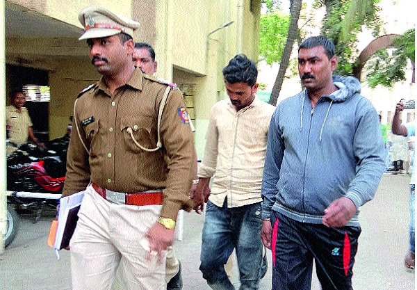 अझरुद्दीन उस्मान टिनमेकर शेख (वय २९, रा. आलिशान चौक, गणेशनगर) व स्वच्छता निरीक्षक श्रीकांत वासुदेव वलसे-मद्रासी (४१, हरिपूर रस्ता, सांगली) अशी अटक केलेल्यांची नावे आहेत. न्यायालयाने त्यांना २६ फेब्रुवारीपर्यंत पोलीस कोठडीत ठेवण्याचा आदेश दिला आहे. याशिवाय निलंबित पोलीस शिपाई आकाश प्रकाश दबडे, संतोष मुळे, बाळू रणबिरे, सदाशिव निलवणी, अनिल कांबळे व सरोजा हेगडे यांच्याविरुद्ध गुन्हा नोंद आहे. संशयितांना मदत केल्याचा सरोजा हेगडे हिच्यावर गुन्हा दाखल आहे.
