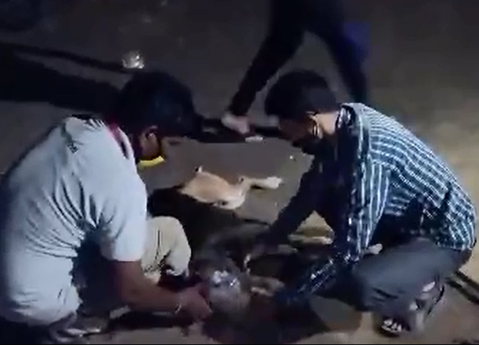 शिवाजीनगर परिसरात आठवडाभर व्याकुळ होऊन ते फिरत होते. रहिवाशांना त्याची दया येऊनही काहीही करु शकत नव्हते. काही तरुणांनी बरणी काढण्याचा प्रयत्न केला, पण कुत्रे घाबरुन पळून गेले. अखेर ॲनिमल राहतच्या कार्यकर्त्यांना याची माहिती मिळाली. कार्यकर्ते किरण नाईक, दिलीप शिंगाणा आदींनी प्रयत्न करुन कुत्र्याला पकडले.