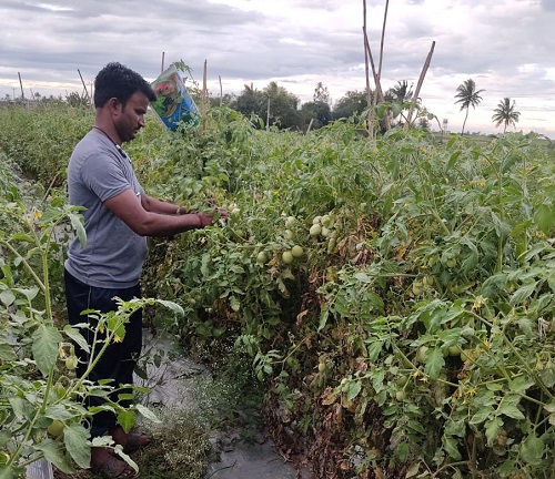 लिंगनूर : बाजारपेठेच्या मागणीनुसार आधुनिक प्रयोगशील शेती करत ३० गुंठ्यांत आठ लाखाचे टोमॅटो घेऊन लिंगनूर (ता. मिरज) येथील बाबासाहेब म्हेत्रे या तरुण शेतकऱ्याने धडा घालून दिला आहे.