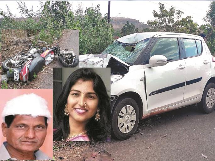 शिराळा : शिराळा - कोकरूड रस्त्यावर बिऊर-शांतीनगर (ता. शिराळा) येथील बसस्थानकाजवळ भरधाव माेटारीने दुचाकीला धडक दिल्याने बाप-लेकीचा मृत्यू झाला. माेटारीच्या जाेरदार धडकेत दुचाकीवरील तृप्ती आत्माराम पवार (वय २८, रा. इस्लामपूर) जागीच ठार झाली, तर तिचे वडील आत्माराम विष्णू पवार (वय ६०, रा. इस्लामपूर) यांचा कऱ्हाड येथील खासगी रुग्णालयात उपचारादरम्यान मृत्यू झाला. हा अपघात काल, रविवारी (दि. २८) दुपारी घडला.साेलापूर येथील डॉ. अल्पेश शिवाजी खडतरे (वय ३८, रा. विजापूर रोड) हे आपल्या कुटुंबासह माेटारीतून क्र. (एमएच १३, बीएन २८१६) रत्नागिरीहून सोलापूरकडे निघाले हाेते. तर आत्माराम पवार व त्यांची मुलगी तृप्ती घरगुती कामासाठी दुचाकीवरून क्र. (एमएच १०, एई ३८०९) इस्लामपूरहून कोकरूडला निघाले होते.दरम्यान, बिऊर-शांतीनगर येथील बसस्थानकापासून काही अंतरावर दाेन्ही वाहनांची समाेरासमाेर भीषण धडक झाली. यामध्ये तृप्ती ही दुचाकीवरून उडून रस्त्यावर फेकली गेली तर आत्माराम पवार हे माेटारीवर जाऊन आदळले. डोक्याला गंभीर मार लागल्याने तृप्तीचा जागीच मृत्यू झाला. आत्माराम यांनाही डोक्याला दुखापत झाली. गंभीर जखमी अवस्थेत त्यांना शिराळा उपजिल्हा रुग्णालयात उपचारासाठी नेण्यात आले. प्राथमिक उपचारानंतर त्यांना कऱ्हाड येथील खासगी रुग्णालयात नेत असताना उपचारापूर्वीच त्यांचा मृत्यू झाला. या अपघाताची माहिती मिळताच शिवसेनेचे जिल्हाध्यक्ष आनंदराव पवार यांच्यासह नातेवाईकांनी शिराळा उपजिल्हा रुग्णालयात धाव घेतली. या अपघाताबाबत धैर्यशील पाटील यांनी शिराळा पोलिसात वर्दी दिली आहे. अधिक तपास सहायक निरीक्षक अविनाश वाडेकर करत आहेत.उच्चशिक्षित तृप्ती ही पुणे येथील खासगी कंपनीत अभियंता म्हणून काम करत हाेती. सुटी असल्याने ती इस्लामपूरला आली हाेती. आत्माराम हे प्रगतशील शेतकरी होते. त्यांच्या पश्चात पत्नी, मुलगा असा परिवार आहे. शिराळा पाेलिस ठाण्यात अपघाताची नाेंद झाली आहे.एक अपघात टळला पण क्षणार्धात दुसरा झालाच..या अपघातापूर्वी खडतरे यांच्या माेटारीची दुसऱ्या एका दुचाकीशी धडक होता होता वाचली. यानंतर काही क्षणातच त्यांच्या माेटारीची आत्माराम पवार यांच्या दुचाकीला धडक बसली.अपघाताची माहिती मिळताच मृत तृप्तीचा भाऊ अनिकेत उपजिल्हा रुग्णालयात आला. या ठिकाणी एका खोलीत तृप्तीचा मृतदेह ठेवला होता. मित्रांनी त्याला तृप्तीचा मृत्यू झाल्याचे न सांगता तिला उपचारासाठी कऱ्हाडला नेल्याचे सांगितले. तसेच वडील आत्माराम यांच्यावर प्राथमिक उपचार सुरू असल्याचे लांबून दाखविले. यावेळी अनिकेतला आवरणे उपस्थितांना अवघड झाले होते.