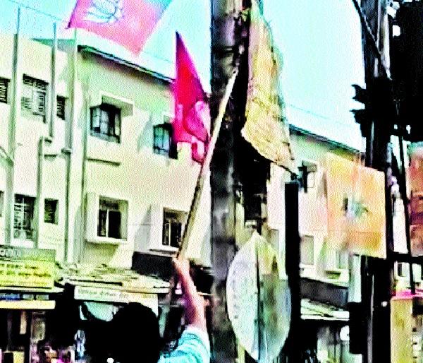 इतकी भीती त्यांनी या झेंड्याबद्दल बाळगली होती.सांगलीच्या बापट बाल शाळेजवळील चौकात दुपारी महापालिकेचे कर्मचारी दाखल झाले. त्यांनी याठिकाणच्या विद्युत खांबांवरील फलक व झेंडे हटविण्यास सुरुवात केली. याठिकाणी मोठ्या प्रमाणावर झेंडे लागले होते. त्यात माकप व भाजपच्या झेंड्यांची संख्या अधिक होती.