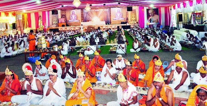 दिगंबर जैनाचार्य संत शिरोमणी विद्यासागरजी महाराज यांचे शिष्य नियमसागरजी महाराज, प्रबोधसागरजी महाराज, वृषभसागरजी महाराज, अभिनंदनसागरजी महाराज व सुपार्श्वसागरजी महाराज यांचा यावर्षीचा संयम स्वर्ण वर्षायोग सध्या सुरू आहे. या मंगलमय पुण्यकाळातील चातुर्मासातील षोडशकरण व दशलक्षण पर्वाचा हा विशेष कार्यक्रम आहे सकाळी सात वाजता सुहास पाटील (गोमटेश) यांच्याहस्ते ध्वजारोहणाने कार्यक्रमाची सुरुवात झाली. यावेळी चातुर्मास कमिटीचे अध्यक्ष, माजी महापौर सुरेश पाटील यांची प्रमुख उपस्थिती होती.