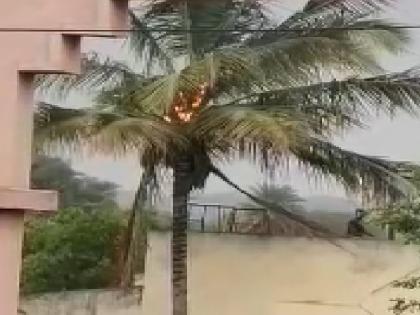 कवठेमहांकाळ तालुक्याला वादळी पावसाने झोडपले, कुचीत वीज पडून नारळाचे झाड पेटले