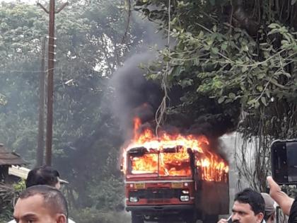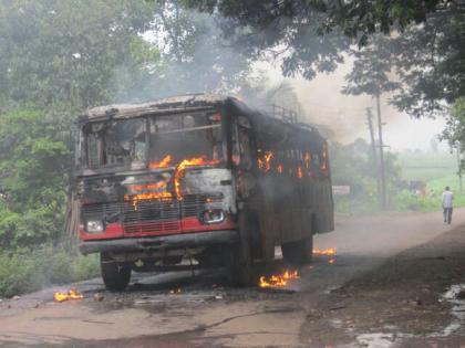 शिवाजी चौकापर्यंत बस आली. पण पुढे रस्त्यावर लाकडी ओंडके ठेवण्यात आले होते. त्यामुळे चालकाने रस्त्याकडेला एसटी थांबविली. तेवढ्यात एसटीवर जोरदार दगडफेक सुरु झाल्याने चालकासह प्रवाशी बचावासाठी सीटखाली लपून बसले. त्यानंतर पाठीमागून टायरच्याबाजूने अज्ञातांनी एसटी बस पेटविली.