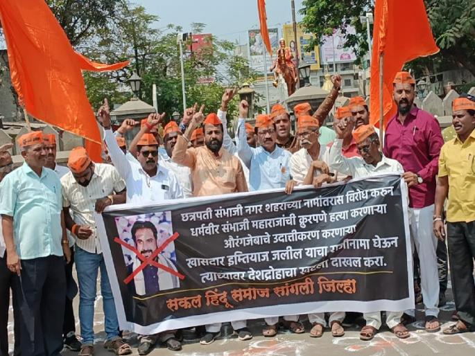 याविरोधात एमआयएमचे खासदार इम्तियाज जलील आंदोलन करत आहे. त्यांनी कॅण्डल मोर्चाही काढला. औरंगजेबाने छत्रपती संभाजी महाराजांची हत्या केली. हजारो हिंदूंची मंदिरे उध्वस्त केली. त्याच्या नावाचा उदोउदो केला जात आहे. खासदार जलील यांच्यावर राष्ट्रद्रोहाचा गुन्हा दाखल करून अटक करावी, अशी मागणी केली.यावेळी प्रसाद रिसवडे, गजानन हुलवाने, श्रीकांत शिंदे, उदय मुळे, रवि वादवणे, अजयकुमार वाले, अभिमन्यू भोसले, विकास आवळे, प्रकाश निकम, संजय निकम, अतुल शिंदे, प्रदीप निकम, आशिष साळुंखे, संजय जाधव, बाळासाहेब मोहिते, रामभाऊ सूर्यवंशी, अशोक पाटील, बाळासाहेब बेलवलकर, सुहास जोशी, प्रथमेश शेटे, दत्ता सूर्यवंशी, पंकज कुबडे आदी उपस्थित होते.