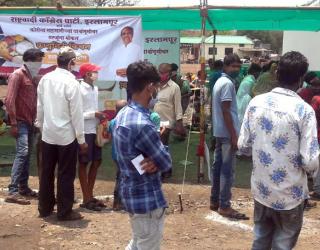 सांगली : कम्युनिटी किचनमुळे इस्लामपूर-पेठ रस्त्यावर सोशल डिस्टन्सिंग धाब्यावर