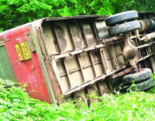 देवनगरला बस उलटून पस्तीस विद्यार्थी जखमी