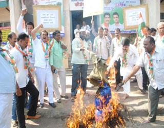 सांगली : काँग्रेसतर्फे सांगलीत पाकिस्तानच्या प्रतिकात्मक पुतळ्याचं दहन, जोरदार निदर्शनं