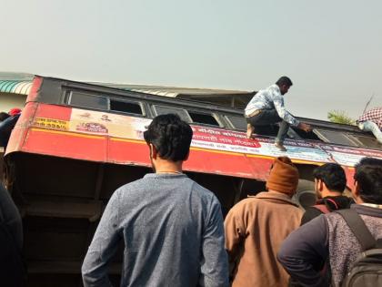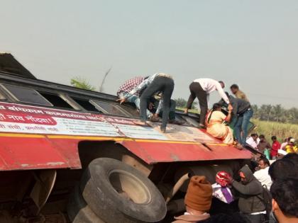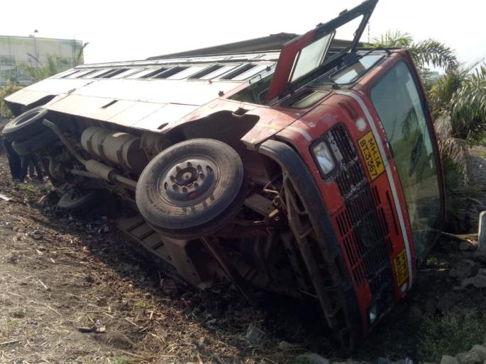 सांगलीत एसटी बस खड्ड्यात उलटली, अनर्थ टळला : २५ प्रवासी किरकोळ जखमी
