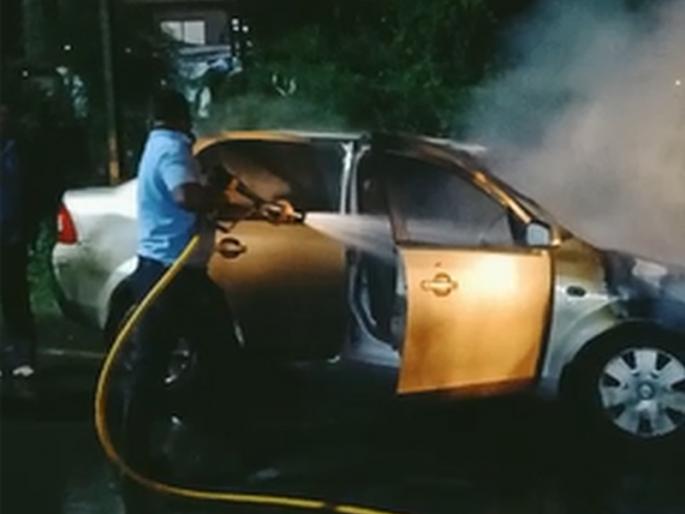 रस्त्यावरून जाणाऱ्या नागरिकांनी तातडीने महापालिकेच्या अग्निशमन विभागाला आगीची माहिती दिली. अग्निशमन विभागाचे विक्रम घाडगे, सुधीर मोहिते, विजय कांबळे, अमोल गडदे यांनी तातडीने घटनास्थळी धाव घेतली. पाण्याचा फवारा मारून आग विझविण्यात आली. या आगीत गाडीचा पुढचा भाग जळून खाक झाला. या घटनेत कुणालाही इजा झाली नाही.