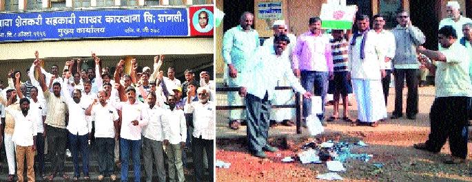 सांगलीतील वसंतदादा साखर कारखान्याच्या दत्त इंडिया कंपनीच्या कार्यालयावर एकरकमी एफआरपीच्या मागणीसाठी स्वाभिमानी शेतकरी संघटनेच्या कार्यकर्त्यांनी मोर्चा काढून निदर्शने केली. बहे (ता. वाळवा) येथे शेतकरी व स्वाभिमानीच्या कार्यकर्त्यांनी ऊस बिलांची होळी करून साखर कारखानदार आणि शासनाचा निषेध केला.
