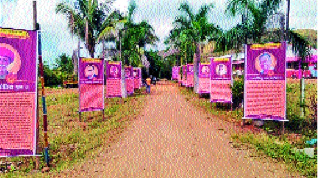 छत्रपती शिवाजी महाराज, डॉ. बाबासाहेब आंबेडकर, महात्मा फुले, राजर्षी शाहू महाराज, क्रांतिसिंह नाना पाटील, लोकशाहीर अण्णाभाऊ साठे, शाहीर अमर शेख, राजे उमाजीराव नाईक अशा महापुरुषांच्या सुमारे १५ फलकांनी पाहुण्यांचे स्वागत केले.