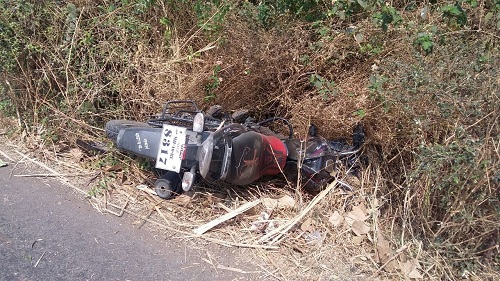 अपघातातील मोटारसायकलचा चक्काचूर झाला असून, मोटार नाल्यात पडली होती. मोटारीचा चालक व त्यासोबत असलेली महिला यांना कोणतीही इजा झाली नव्हती. अपघातानंतर मोटारीचा चालक व महिला पसार झाल्याची माहिती पोलिसांनी दिली.