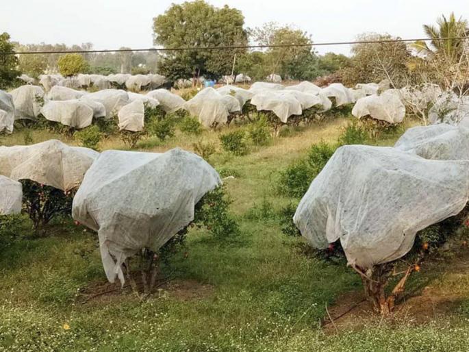 जिल्'ातील खानापूर, आटपाडी, तासगाव, सोलापूर जिल्'ातील सांगोला, सातारा जिल्'ातील खटाव व माण आदी तालुक्यात शेतक-यांनी डाळिंब बागांतील झाडे व फळे पूर्णपणे झाकून घेतली आहेत. त्यामुळे धुके, दव, उन्हामुळे फळांना पडणारे चट्टे आणि रोगांचा प्रादुर्भाव ब-याच प्रमाणात कमी होणार आहे. डाळिंब फळांना नॉनओव्हन पेपरचे आवरण घातल्यानंतर औषधांचे प्रमाण कमी लागून मोठे कीटक, ऊन, बुरशी आदी रोगांपासून फळांचे संरक्षण होत आहे.