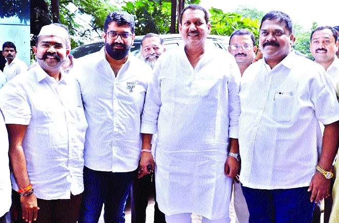 सातारा येथे गुरूवारी जिल्हा मध्यवर्ती बँकेच्या आवारात उदयनराजे भोसले, शिवेंद्रराजे भोसले यांच्यासह नरेंद्र पाटील आणि रमेश पाटील असे एकत्र आले.