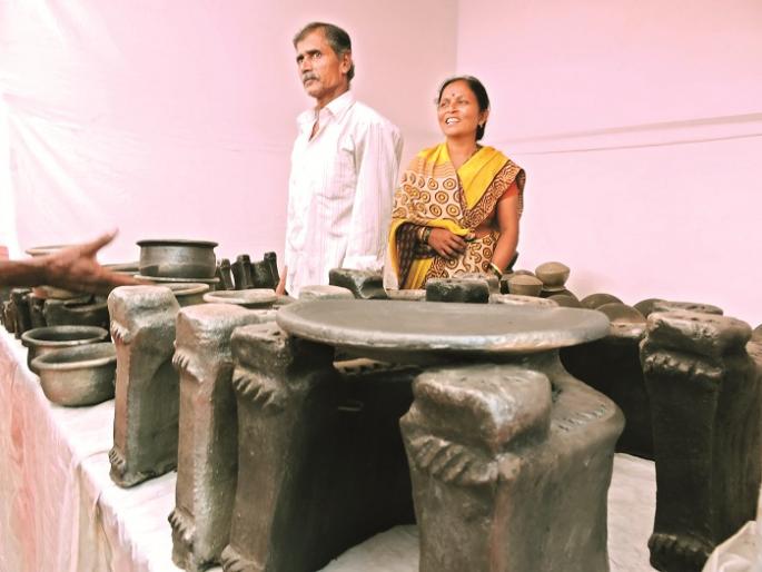 मातीची चूल अन् भांडी--म्हसवड येथील भारत कुंभार मातीची भांडी घेऊन महोत्सवात दाखल झाले आहेत. मातीची भाजलेली चूल, मडकी, विविध भांडी, दही ठेवण्याचे भांडे, भाजीची भांडी त्यांनी आणली आहेत