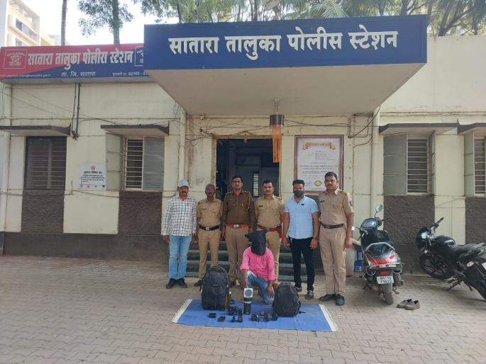 सातारा तालुका ठाण्याचे पोलिस निरीक्षक विश्वजित घोडके यांच्या मार्गदर्शनाखाली गुन्हे प्रकटीकरण पथकाने २४ तासांच्या आत चोरीचा छडा लावला. तसेच याप्रकरणी रामचंद्र तुकाराम पवार (रा. मायणी, ता. जावळी) याला ताब्यात घेतले. चौकशीनंतर त्याने चोरीची कबुली दिली. तसेच त्याच्याकडून कॅमेरा, चार्जर, बॅटरी, माईक, लेन्स तसेच कागदपत्रे असा सुमारे दोन लाखांचा मुद्देमाल हस्तगत करण्यात आला. या गुन्ह्याचा तपास हवालदार वायदंडे हे करीत आहेत.पोलिस निरीक्षक विश्वजित घोडके यांच्या मार्गदर्शनाखाली कारवाई करण्यात आली. यामध्ये सहायक पोलिस निरीक्षक फार्णे, उपनिरीक्षक डी. ए. दळवी, हवालदार राजू शिखरे, मालोजी चव्हाण, धनंजय कुंभार, तुकाराम पवार, महेंद्र नारनवर, डफळे आदींनी सहभाग घेतला.