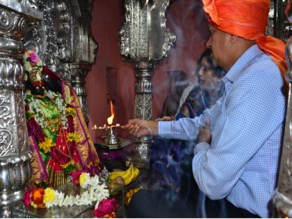आज सकाळी अप्पर जिल्हाधिकारी रामचंद्र शिंदे, उप वनसंरक्षक महादेव मोहिते, अपर पोलीस अधिक्षक अजित बोऱ्हाडे यांच्या हस्ते भक्तिमय वातावरणात आई भवानी मातेची मंत्रोच्चाराच्या गजरात षोडशोपचार पुजा बांधण्यात आली. व्यवस्थापक ओंमकार देशपांडे यांनी पौरोहित्य केले. त्यानंतर अपर जिल्हाधिकारी रामचंद्र शिंदे यांनी सपत्नीक आई भवानीची मनोभावे आरती केली. भवानी मातेच्या मंदिरासमोरील ध्वजस्तंभाचे मान्यवरांच्या हस्ते विधिवत पूजन करुन शिवशाहीचे प्रतिक असणाऱ्या भगव्या ध्वजाचे ध्वजारोहण कुंभरोशीच्या सरपंच कांचन सावंत यांच्या हस्ते करण्यात आले. यावेळी वाईचे प्रांताधिकारी राजेंद्रकुमार जाधव, महाबळेश्वरच्या तहसीलदार सुषमा पाटील, गट विकास अधिकारी अरुण मरबळ आदी उपस्थित होते.