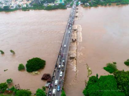 कोयना धरण पाणलोट क्षेत्रात पावसाचा जोर आहे. कराडलाही तुफान पाऊस सुरू आहे. कृष्णा नदीची पाणी पातळी वाढली आहे. त्यामुळे महामार्ग प्राधिकरणने नवीन कृष्णा पुलावरील वाहतूक बंद करण्याच्या सुचना पत्राद्वारे दिल्या आहेत. त्यामुळे कराड- विटा रोडवरील नवीन कृष्णा पूल वाहतुकीसाठी बंद करण्यात येत आहे. नागरिकांनी कोणताही धोका पत्करू नये. नागरिकांनी सहकार्य करावे असे आवाहन कराड तालुका प्रशासनाने केले आहे. (छायाचित्रे सौजन्य - उदय जाधव)