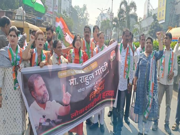 खासदारांच्या निलंबनाच्या निषेधार्थ साताऱ्यात काँग्रेसची निदर्शने, भाजपविरोधात घोषणाबाजी
