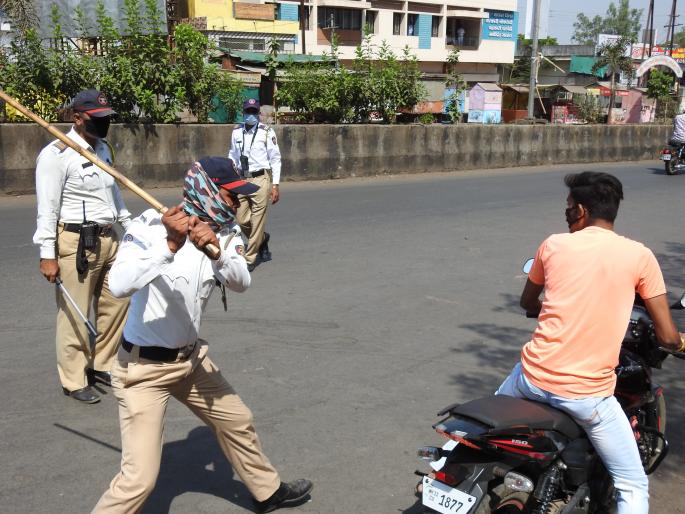 कोरोनाचा वाढता प्रादुर्भाव रोखण्यासाठी शासनाने संपूर्ण राज्यात संचारबंदी लागू केली असून, सातारा जिल्ह्यातही याची काटेकोर अंमलबजावणी केली जात आहे.सातारा शहरातील अत्यावश्यक सेवा वगळता इतर सर्व व्यवहार बंद ठेवण्यात आले आहेत. तसेच शहरातील प्रमुख मार्गही वाहतुकीसाठी बंद करण्यात आले आहेत. दरम्यान, रस्त्यावरून फेरफटका मारणाऱ्या काही दुचाकीचालकांचा पोलिसांकडून चांगलाच समाचार घेतला जात आहे.