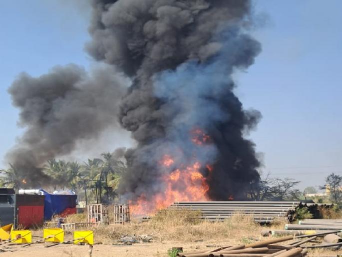 कऱ्हाड : गॅस पाइपलाइनच्या गुदामाला आग लागून पाइप व केबल जळून खाक झाले. गोटे, ता. कऱ्हाड येथे गुरुवारी (दि. २३) दुपारी ही घटना घडली. या आगीत लाखो रुपयांचे नुकसान झाले आहे.पुणे-बंगळुरू आशियाई महामार्गावरील सेवा रस्त्यावर गत अडीच ते तीन वर्षांपासून गॅस पाइपलाइन टाकण्याचे काम सुरू आहे. एका कंपनीकडून हे काम सुरू असून, कंपनीने पाइपलाइन टाकण्यासाठी ठेकेदारास ठेका दिला आहे. संबंधित ठेकेदाराने कऱ्हाडजवळील गोटे गावच्या हद्दीत पुणे-बंगळुरू महामार्गालगत गॅस पाइपलाइनसाठी आवश्यक पाइप, केबल, कॉम्प्रेसर यासह अन्य साहित्य ठेवले होते.दरम्यान, गुरुवारी दुपारी अचानक या परिसरात आग लागली. परिसरात वाळलेले गवत, झाडी होती. तसेच केबल व पाइपला प्लॅस्टिक कोटिंग असल्याने काही क्षणातच आगीने रौद्ररूप धारण केले. घटनेचे गांभीर्य लक्षात घेत कर्मचाऱ्यांनी याबाबतची माहिती शहर पोलिसांसह कऱ्हाड पालिका व कृष्णा हॉस्पिटलच्या अग्निशमक दलाला दिली. मात्र, तोपर्यंत आग भडकली होती.धुराचे लोट हवेत पसरले होते. काही वेळातच कऱ्हाड पालिकेच्या अग्निशमन दलासह दोन टँकर त्याठिकाणी पोहोचले. कृष्णा हॉस्पिटलचा बंबही घटनास्थळी दाखल झाला. त्यामुळे आगीवर नियंत्रण मिळविण्यात यश मिळाले. या आगीत लाखो रुपयांचे नुकसान झाले आहे.