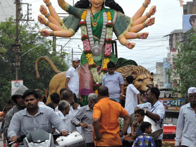 साताºयात मिरवणुकीद्वारे दुर्गामूर्तीची प्रतिष्ठापना