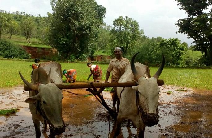 पेट्री : सातारा शहराच्या पश्चिमेस असणाºया कास बामणोली परिसरात पावसाने पुन्हा एकदा जोरदार हजेरी लावल्याने भात लावणीस वेगाने सुरुवात झाली आहे.या परिसरातील शेतकरी डोक्यावर इरले, पोती व कागदाची टापूस बांधून मुसळधार पावसात भाताची लावणी करण्यात व्यस्त झाले आहेत. भाताच्या शिवारात ‘रामा हो रामा..’रामाच्या बागेमध्ये हो बागेमध्ये, पाऊस पडतो झिरमिरी झिरमिरी .. माझ्या बंधूंच्या शेतावरी, ध्यान मला रामाचं ध्यान मला रामाचं ... मारूतीला रात्र झाली द्रोणागिरी जायाचं, शंकर म्हणे पार्वते ... कुणाला तू ओढीत होतीस कुणाला तू सोडीत होतीस, वाईचे डोंगरी गजबारल्या तोरणी ..., ' अशा कित्येक पांरपरिक भलरी गीतांचे स्वर निनादू लागले आहेत.कास बामणोली परिसर हा घाटमाथा म्हणून ओळखला जातो. हा परिसर सह्याद्रीच्या पर्वतरांगांनी वेढलेला आहे. या ठिकाणी पावसाचे प्रमाण अधिक असते. येथील डोंगर उतारामुळे पावसाचे पाणी पूर्णपणे वाहून जाते. यामुळे जमिनीत कमी प्रमाणात पाणी मुरते. जमिनी लाल माती व मुरबाड असल्याने येथील शेतकरी मोठ्या प्रमाणावर भात, नाचणी, वरी ही पिके घेतात. या भागातील जमिनी लाल माती व मुरबाड असल्याने पिके चांगली येण्यास खूप मशागत करावी लागते. येथील शेतकरी डिसेंबर जानेवारी महिन्यात ऐन, जांभूळ, उंबर, अशा झाडांची कवळे बांधतात. होळी या सणानंतर तरव्यांची भाजणी केली जाते. पावसाळ्याला सुरुवात होताच जून महिन्यात याच तरव्यामध्ये भाताच्या बियाणांची पेरणी करून लावणीसाठी २१ ते ३० दिवसांपर्यंत रोपांची योग्य वाढ झाल्यानंतर पारंपरिक पध्दतीने औताच्या साहायाने भाताच्या वावरात चिखल करून त्यामध्ये तर भातांच्या रोपांची लावणी करण्यात येते. डोक्यावर इरलीचा आधार घेऊन पोती, कागदाची टापूस बांधून मुसळधार पावसात शेतकरी भात लावणी करत आहेत. दरम्यान भात लावणी करत असताना करमणुकीसाठी व कामाचा कंटाळा येऊ नये यासाठी तालावर भलरी गीते म्हणताना दिसत आहेत. भाताची लावणी करण्यासाठी अनेकांची आवश्यकता असल्याने एकमेकांना मदत करत आहेत. त्यामुळे भल्या पहाटे सुरू होणारा बळीराजाचा दिवस संध्याकाळी सातपर्यंत शेतातच मावळत असल्याचे चित्र या परिसरात दिसत आहे.चौकट : पैरा : परस्परांना मदत करण्याची प्रथा वस्तू अथवा पैशाचा कोणताही मोबदला न घेता भात लावणी करण्यासाठी अनेकजण एकमेकांच्या कामासाठी मदत करतात. यालाच या परिसरात पैरा म्हणतात. यामुळे कमी वेळात भात लावणी होण्यास मदत होते. तसेच सर्वांच्या भात लावण्या सुरू असल्याने औताला मोठया प्रमाणावर मागणी होत आहे.कोट:परिसरातील संपूर्ण शेती पावसावर अवलंबुन आहे. काही तुरळक ठिकाणी अजूनही ओढे अथवा विहिरीतील पाणी साठवुन भात लावणी होत आहे. भात लावणी करताना आजही ही प्रर परिक भलर