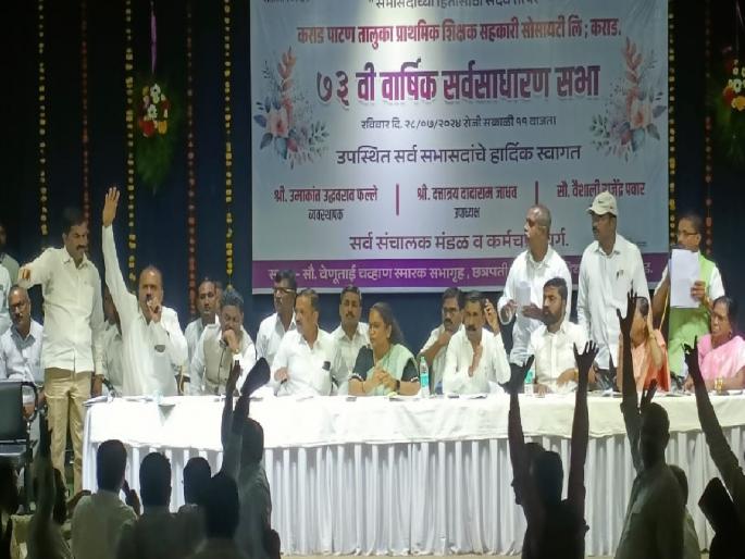 कराड पाटण तालुका प्राथमिक शिक्षक सोसायटीची ७३वी वार्षिक सर्वसाधारण सभा रविवारी पार पडली. सभेच्या अध्यक्षस्थानी वैशाली पवार होत्या. तर संचालक मंडळासह सभासदांची मोठी उपस्थिती होती. विषय पत्रिकेवर कराड येथील संस्थेची जुनी इमारत पाडून नवीन इमारत बांधणे व तळमावले येथील शाखेसाठी जागा खरेदी करणे हे दोन महत्त्वाचे विषय होते. त्यामुळे शिक्षक वर्तुळात याची गत आठवड्याभरापासूनच चांगली चर्चा रंगली होती.
