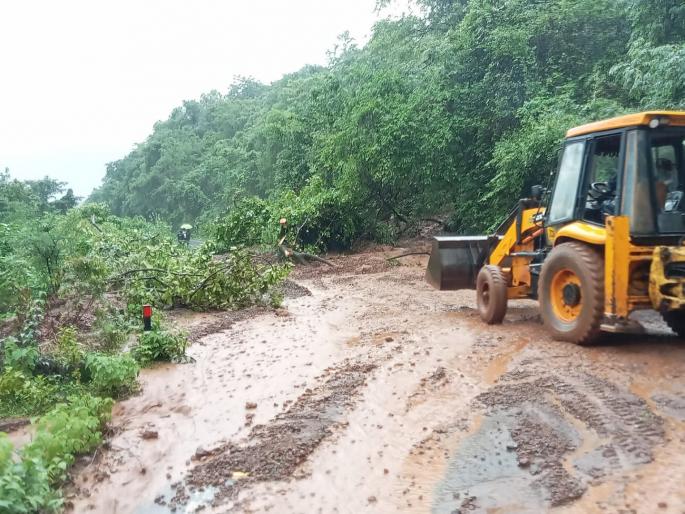 सातारा : जिल्ह्याच्या पश्चिम भागात जोरदार पाऊस पडत असल्याने महाबळेश्वरातून पोलादपूरला जोडणाऱ्या आंबेनळी आणि काेयनानगरपासून चिपळूणला जाणाऱ्या कुंभार्ली घाटात दरड कोसळली. यामुळे वाहतूक ठप्प झाली आहे. तर सततच्या पावसाने जनजीवनही विस्कळीत झाले असून २४ तासांत महाबळेश्वरला २३१ आणि नवजाला तब्बल ३०७ मिलीमीटर पाऊस झाला. यामुळे कोयना धरण साठ्यात जवळपास चार टीएमसी वाढ झाली आहे.जिल्ह्याच्या पश्चिम भागात मागील तीन आठवड्यांपासून पाऊस पडत आहे. सुरुवातीला चांगला पाऊस पडला. त्यानंतर मात्र, जोर कमी होत गेला. मागील आठवड्यात तर उघडझाप सुरू होती. असे असतानाच शनिवारपासून पावसाचा जोर हळूहळू वाढत गेला. रविवारी आणि सोमवारीही चांगला पाऊस पडला. तर सोमवारपासून पावसात वाढ झाली.कास, बामणोली, तापोळा, कोयना, नवजा, महाबळेश्वरसह संपूर्ण कांदाटी खोऱ्यात जोरदार पाऊस पडत आहे. यामुळे परिसरातील ओढे, नाले भरुन वाहत आहेत. तसेच भात खाचरेही भरुन गेली आहेत. त्याचबरोबर जोरदार पावसामुळे धोम, बलकवडी, कोयना, तारळी, कण्हेर, उरमोडीसारख्या प्रमुख धरणांतील पाणीसाठाही वाढत चालला आहे. त्यातच मंगळवारी रात्रीपासून पश्चिम भागात जोरदार पाऊस सुरू झाला आहे. यामुळे अनेक ठिकाणी रस्त्यावर दरड कोसळण्याच्या घटना घडत आहेत.जोरदार पावसामुळे महाबळेश्वर-पोलादपूर मार्गावरील आंबेनळी घाटात दरड कोसळली आहे. जूनपासून आतापर्यंत तीनवेळा दरड पडण्याची घटना घडली. त्यामुळे वाहतुकीवर परिणाम झाला आहे. तसेच कऱ्हाड-गुहागर मार्गावरील कुंभार्ली घाटातही दरड कोसळली. ही दरड हटविण्याचे काम युध्दपातळीवर सुरू झालेले आहे. पण, दरड कोसळल्याने वाहतूक ठप्प झाली होती. तर पाटण तालुक्यातील कोयनानगर परिसरातील काडोली ते संगमनगर रस्ता वाहतुकीसाठी बंद करण्यात आलेला आहे.