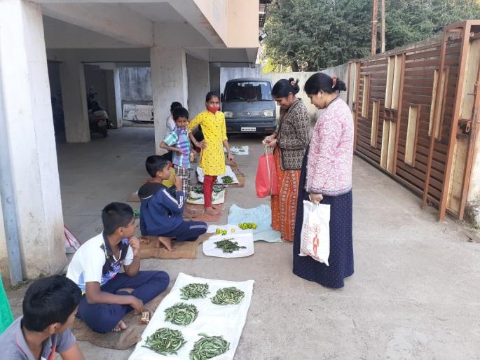CoronaVirusUnlock Satara- पुस्तकी ज्ञानाबरोबरच मुलांना व्यवहार ज्ञान मिळावे, अर्थकारण समजावे यासाठी शाळांमधून दरवर्षी भाजीमंडई भरवली जाते. कोरोनाचा शिरकाव झाला अन् मार्चपासून शाळा बंद ठेवाव्या लागल्या. घरात बसून मुलं ऑनलाईन शिक्षण घेत असले तरी त्यांच्यातील शिक्षणाचा आनंद कमी होऊ नये म्हणून वाईतील सोसायटीमध्येच भाजीमंडई भरवण्यात आली होती.