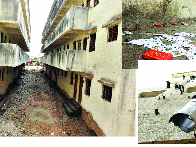 घरकुलाची दारे, लोखंडी खिडक्या, ड्रेनेज पाईपलाईन, बांधकामाचे साहित्य, बांबू, विटा, लोखंडी सळया आदी साहित्यांची चोरी झाली असून, असे प्रकार वारंवार घडू लागले आहेत. काही विघ्नसंतोषींकडून इमारतीची मोडमोडही करण्यात आली आहे. रात्रीच्या वेळी या घरकुलांमध्ये पत्त्यांचे डाव रंगत आहेत. मद्यपींसाठी ही घरे म्हणजे ‘आओ जाओ घर तुम्हारा’ अशीच परिस्थिती बनली आहे. ठिकठिकाणी दारुच्या बाटल्यांचा खच साचला असून, याकडे कोणाचेही लक्ष नाही. चोरीच्या घटनांमुळे प्रशासन हतबल झाले असून, इमारत पूर्ण होऊनही झोपडपट्टीधारकांचा हक्काच्या घरासाठी संघर्ष सुरूच आहे.