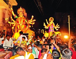 ‘उदे गं अंबे उदे’च्या गजरात दुर्गामूर्तींचे विसर्जन