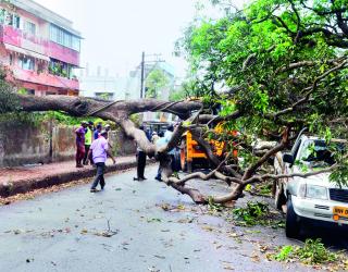 सातारा-लोणंद राज्यमार्गावरील वडाचे झाड पडल्याने वाहतूक विस्कळीत