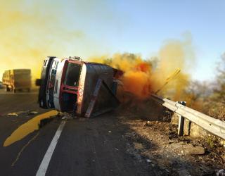रसायनाची वाहतूक करणारा टँकर उलटला, चालकासह दोघे बचावले