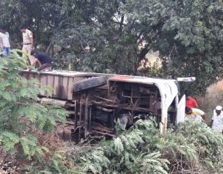 पुणे-बेंगलोर राष्ट्रीय महामार्गावर खासगी बस उलटून आठ जखमी : वेळे हद्दीत सलग दुसºया दिवशी दुर्घटना