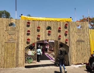 साताऱ्यातील गोडोली येथील 'बांबूच्या मतदान केंद्रा'ने वाढविला मतदारांचा उत्साह