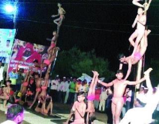 सातारा : छबिना मिरवणुकीत मल्लखांबाची प्रात्यक्षिके-सातारा तालुक्यातील आरे गावात नवा पायंडा