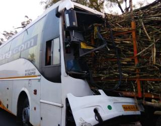 सातारा : खासगी प्रवासी बस घुसली ऊसाच्या ट्रॉलीत; ३२ प्रवासी किरकोळ जखमी