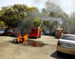 सातारा : सातारा : महाबळेश्वरच्या आठवडी बाजारात दुचाकी पेटली, विक्रेत्यांसह ग्राहकांची धावपळ