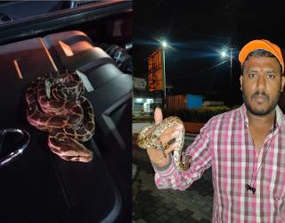 ..अन् कारमधून निघाला अजगर, कऱ्हाडात थरार; सर्पमित्रांनी केले ‘रेस्क्यू’