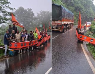 कुंभार्ली घाटातील रस्ता खचला!, मनसेने बॅरल, झेंडे उभारून वाहतूकदारांना दिला सावधानतेचा इशारा