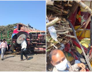 ट्रक-ऊसाच्या ट्रॅक्टरचा अपघात, अडकलेल्या चालकाला केबीनमध्येच तासभर सलाईन देऊन वाचविला जीव