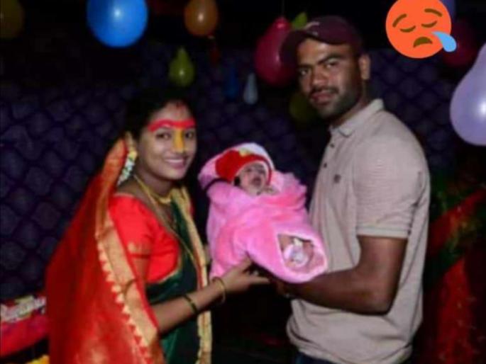 मुंढे-विजयनगर येथे अंत्यसंस्कार होणा-या ठिकाणची गुरुवारी शालेय विद्यार्थी आणि युवकांनी स्वच्छता करून चौथरा उभारण्यासाठी मदत केली. मुलीच्या नामकरणासाठी आलेल्या जवान संदीप आणि पत्नी सविता यांनी चिमुकलीला तळहातावर घेऊन फोटो काढला होता. (छाया : अरमान मुल्ला)