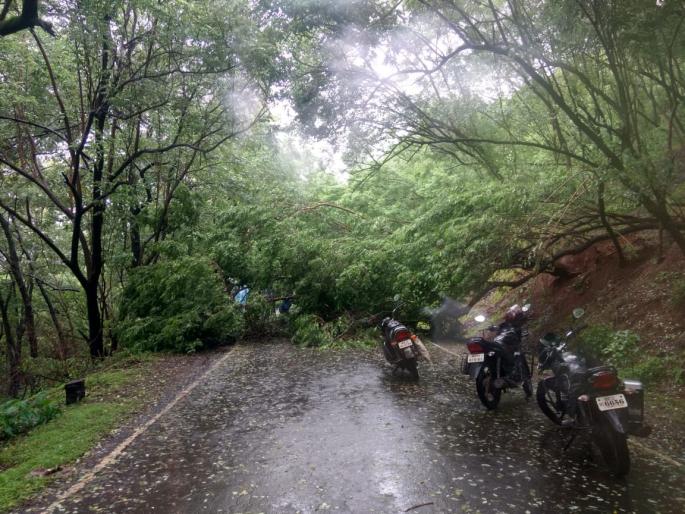 सातारा - ठोसेघर रस्त्यावर झाडे कोसळली...रस्ता वाहतुकीसाठी खुला