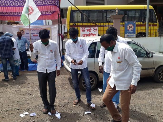 सातारा/कऱ्हाड : स्वाभिमानी शेतकरी संघटनेच्यावतीने शेतकरी विरोधी विधेयक फाडून केंद्र सरकारचा निषेध व्यक्त करण्यात आला. हे आंदोलन साताऱ्यातील जिल्हाधिकारी कार्यालय तसेच कऱ्हाड तहसील कार्यालयासमोर करण्यात आले. आंदोलनकर्त्यांनी कऱ्हाडचे प्रांताधिकारी उत्तमराव दिघे यांना याबाबतचे निवेदनही दिले.निवेदनात म्हटले आहे की, केंद्र सरकारने शेतकरी विरोधी विधेयक लोकसभा व राज्यसभेत कोणतीही चर्चा न करता मंजूर करून घेतले आहे. त्याचा आम्ही निषेध करीत असून ते विधेयक त्वरीत मागे घ्यावे. निवेदनावर देवानंद पाटील, प्रमोद जगदाळे, रामचंद्र साळुंखे, दादासाहेब यादव आदींच्या सह्या आहेत.